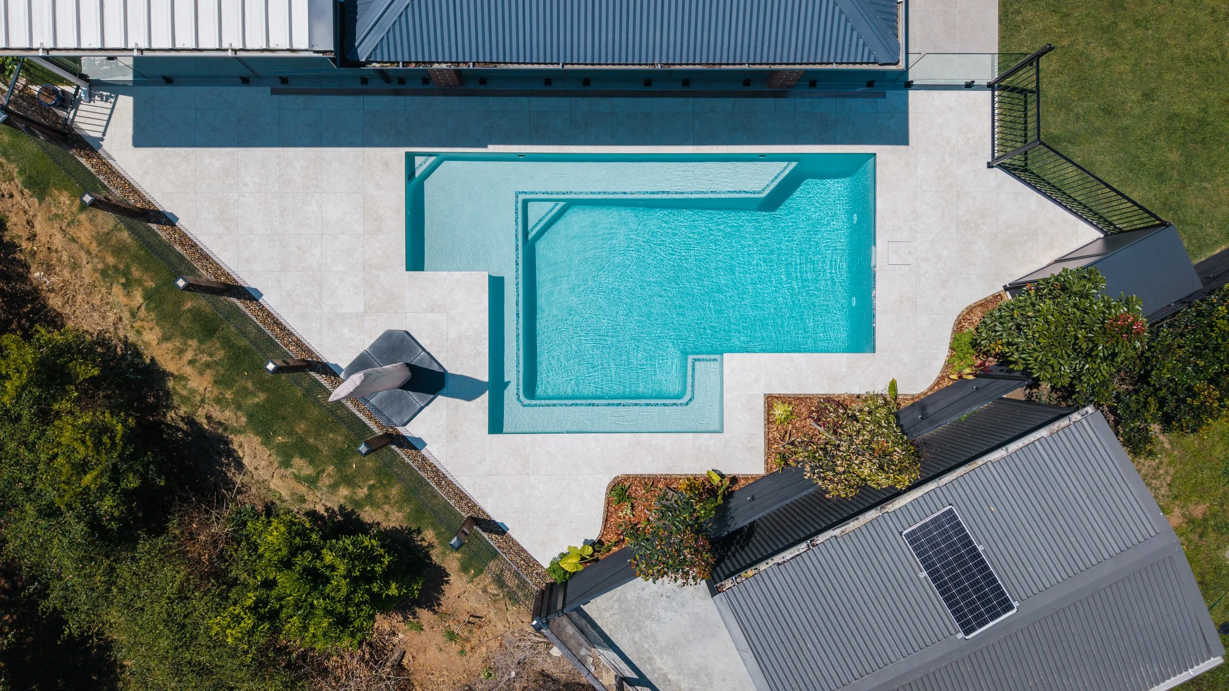We designed a 22.4-linear-metre custom concrete pool with strong, clean lines to maximise swim space while maintaining a refined, contemporary aesthetic. The pool’s shape was carefully considered to work with the existing layout of the home, ensuring smooth flow between the interior living spaces and the outdoor zone.